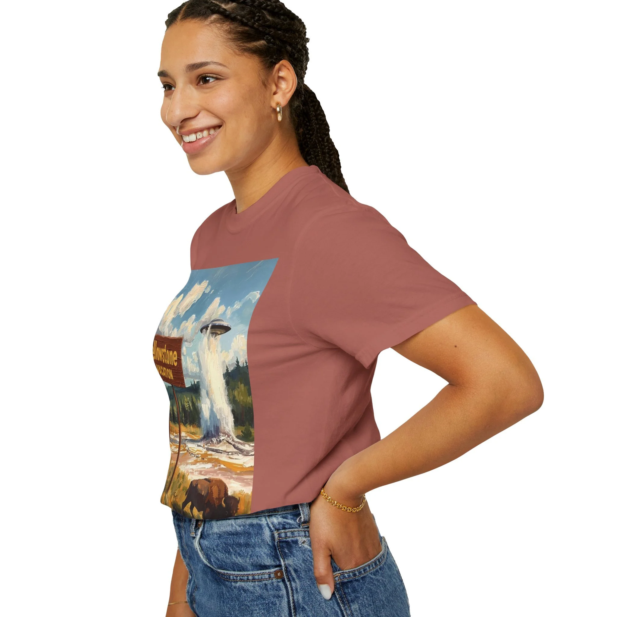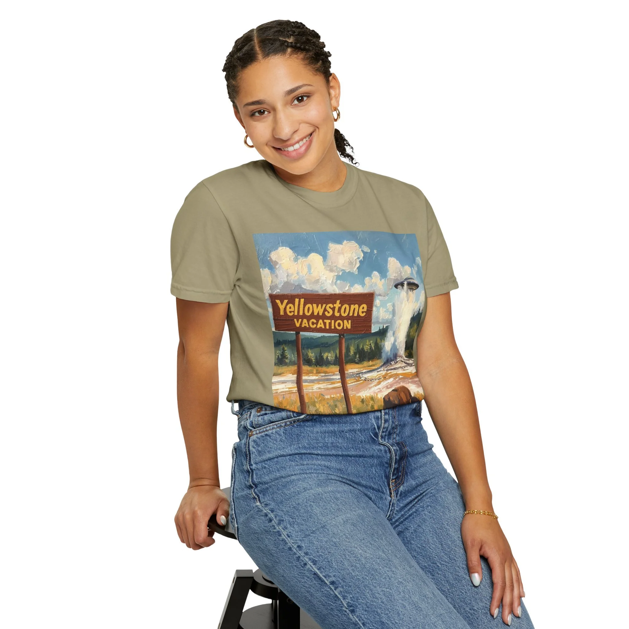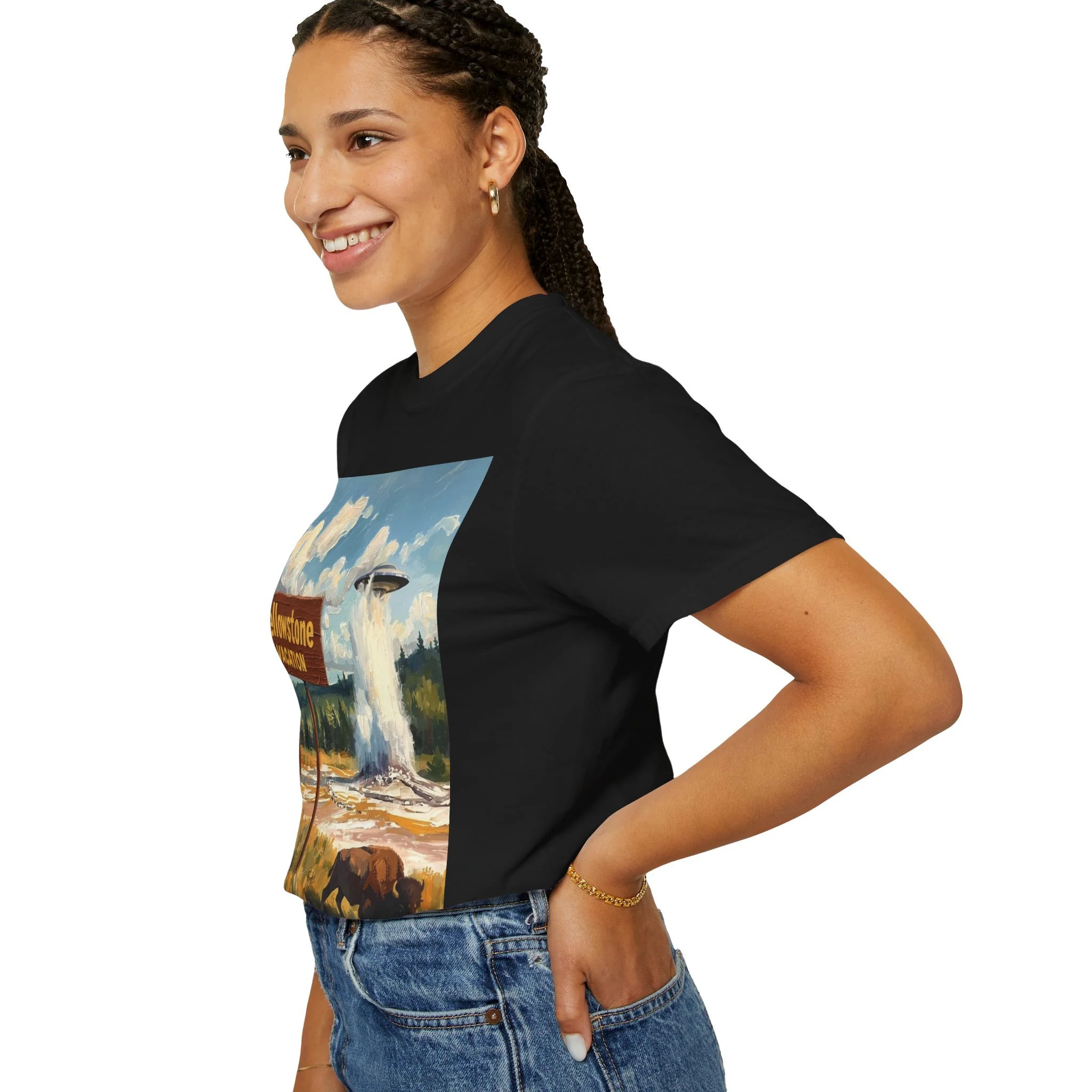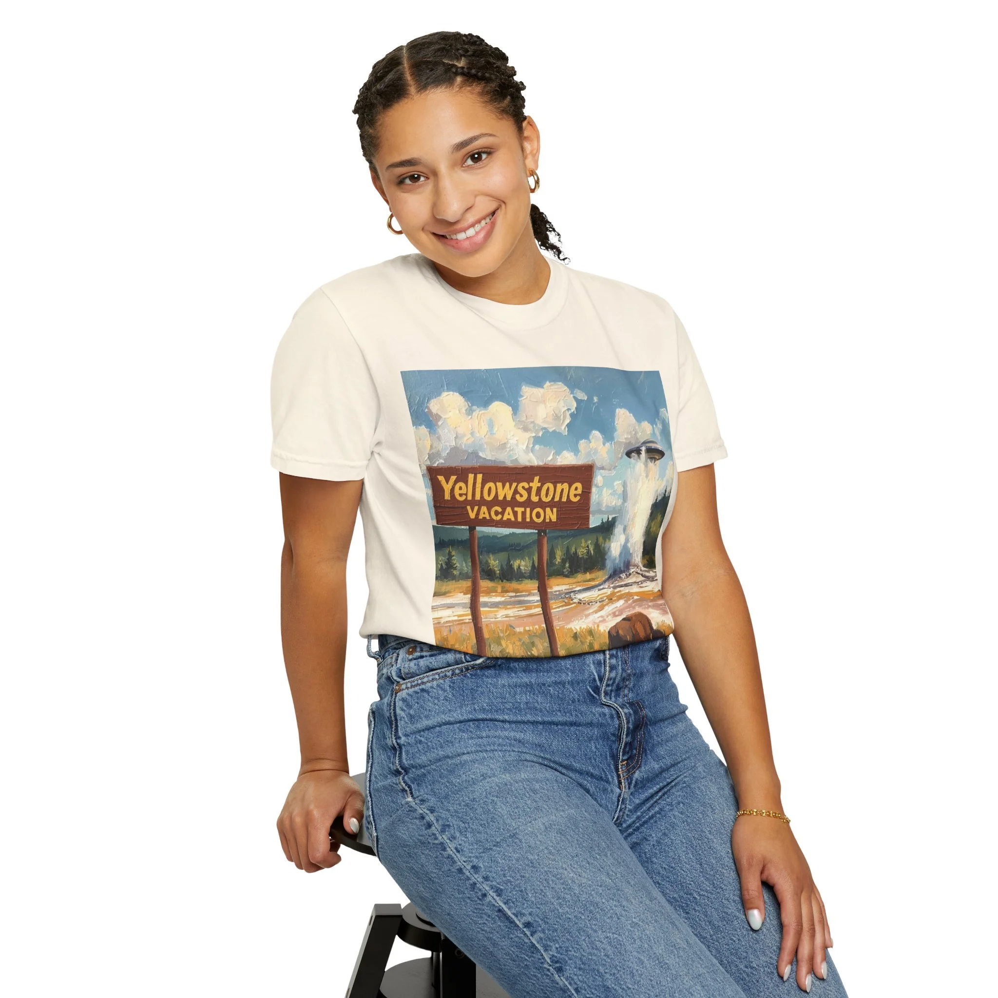 Yellowstone Vacation T-Shirt — Vintage Geyser & Bison Oil Painting Design